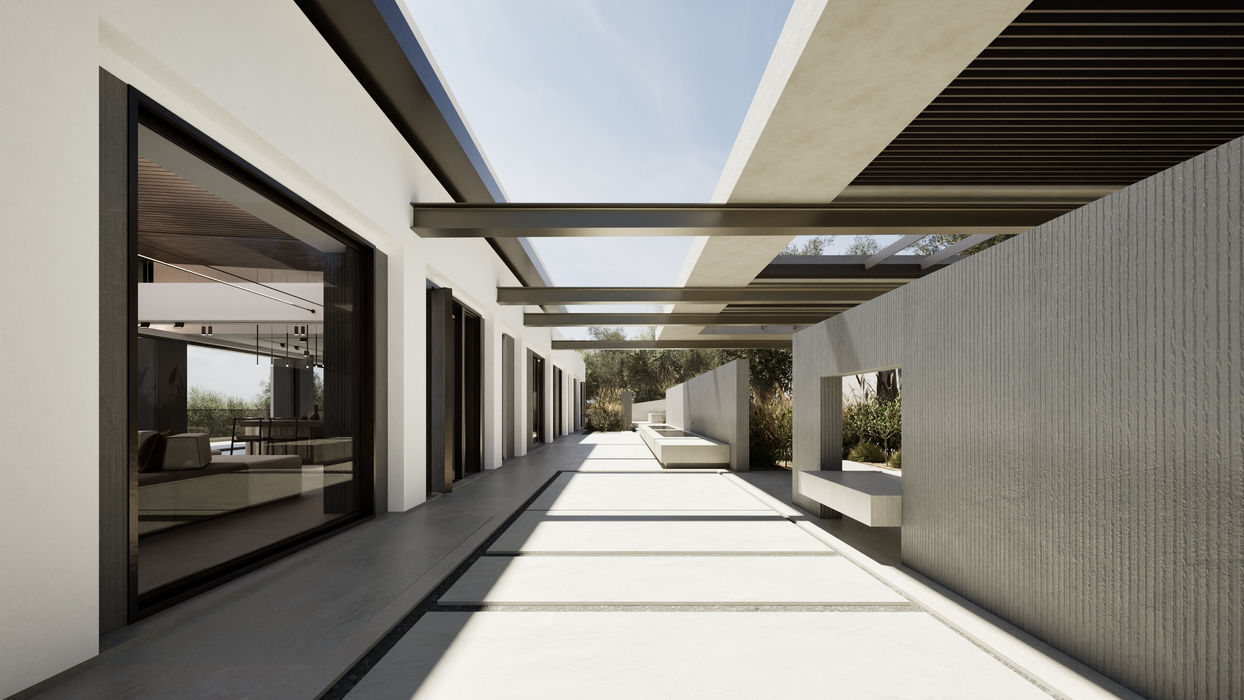 Clean lines and minimal detailing emphasize simplicity, while expansive openings frame the breathtaking sea view, flooding the spaces with natural light. The seamless connection between indoors and outdoors enhances the sense of openness, allowing the coastal landscape to become an integral part of the home’s modern, serene character.
